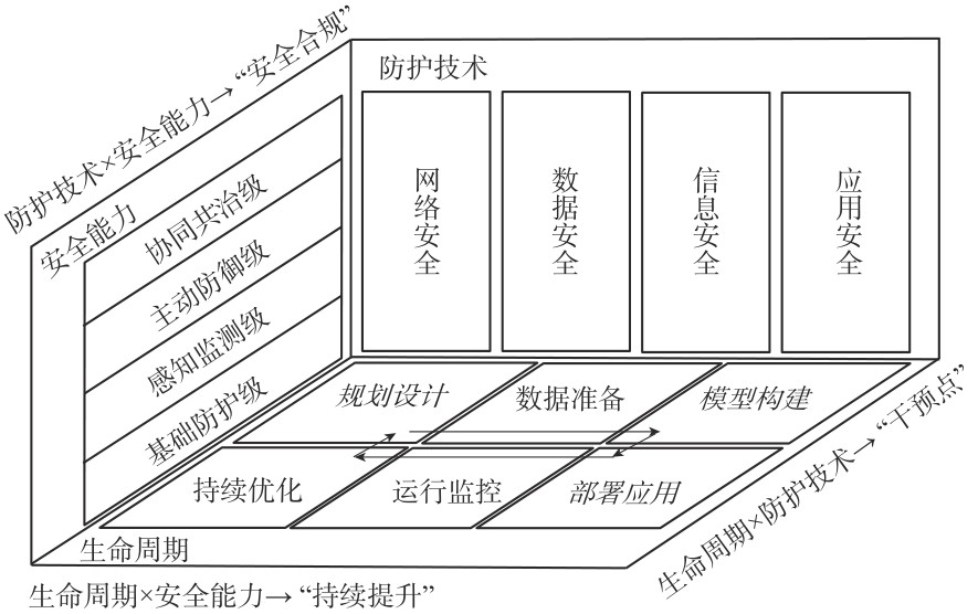 【目的】本文分析了人工智能安全面临的风险和挑战,针对现有防护体系在系统性结构、生命周期管理及安全能力评估方面的不足,构建了多维层次化的人工智能安全防护体系模型。【方法】模型将防护技术体系重新梳理为网络安全、数据安全、信息安全和应用安全四个方面,融入人工智能安全的生命周期管理,提出了基础防护、感知监测、主动防御、协同共治四级能力体系。【结果】模型在人工智能安全评估与测评、人工智能安全围栏设计以及安全能力生命周期管理中得到应用验证,相比传统单一维度防护体系,实现了人工智能系统全周期、多维度的安全覆盖,且防护针对性与可操作性显著提升。【局限】目前跨平台跨组织的人工智能威胁情报共享及人工智能模型协同演进机制尚未建立,可能影响人工智能系统对安全风险的主动防御和协同共治能力。【结论】研究成果为人工智能安全治理提供了理论框架和技术路径,对促进人工智能安全发展具有重要参考价值。