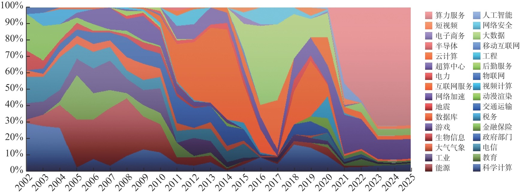 | 图5 中国TOP100应用领域趋势(2002-2025) |